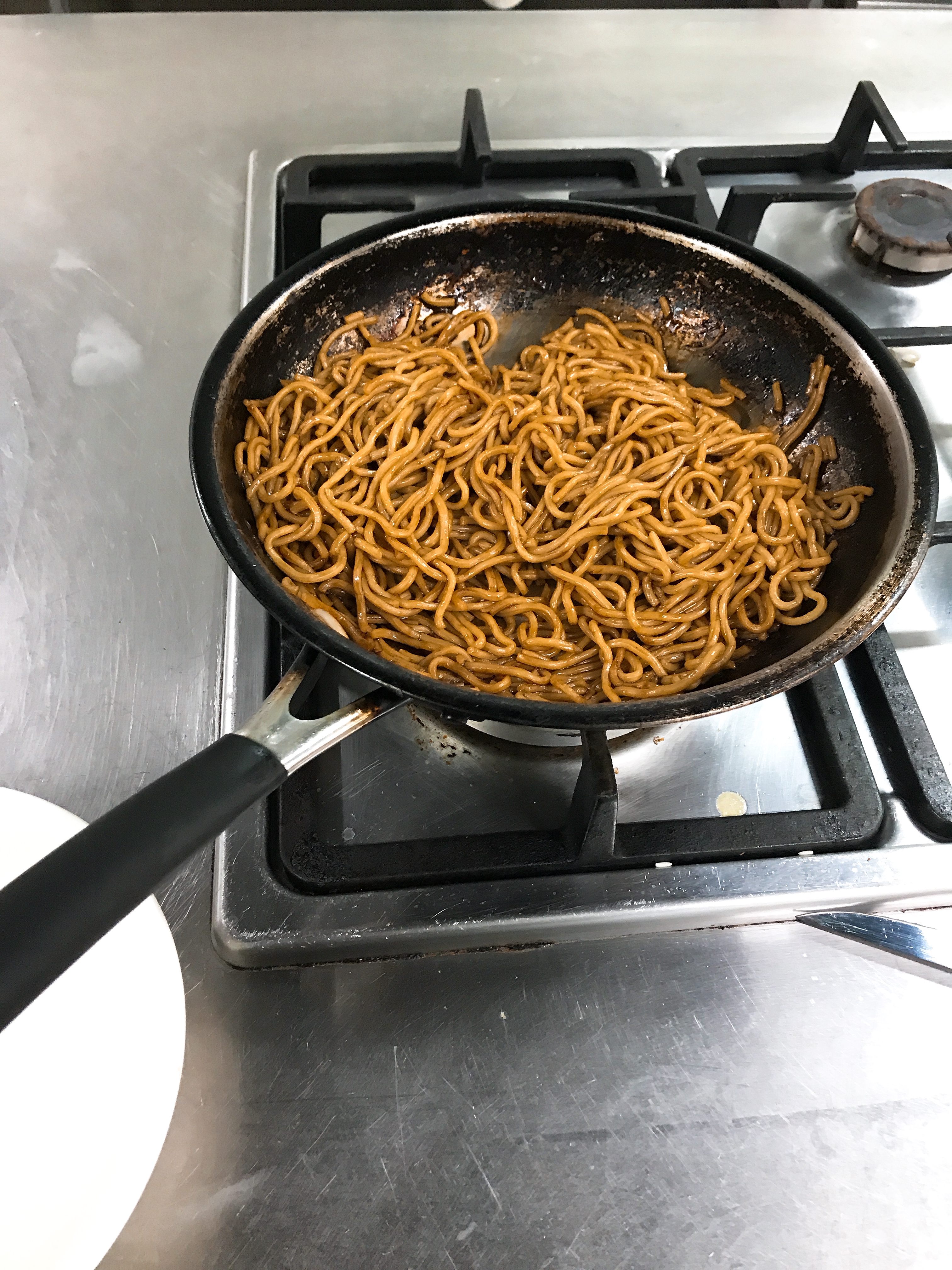 夕飯はホステルのキッチンで焼きそばを作りました。特に食べておくべきオーストラリア料理はないので、自炊して節約します。