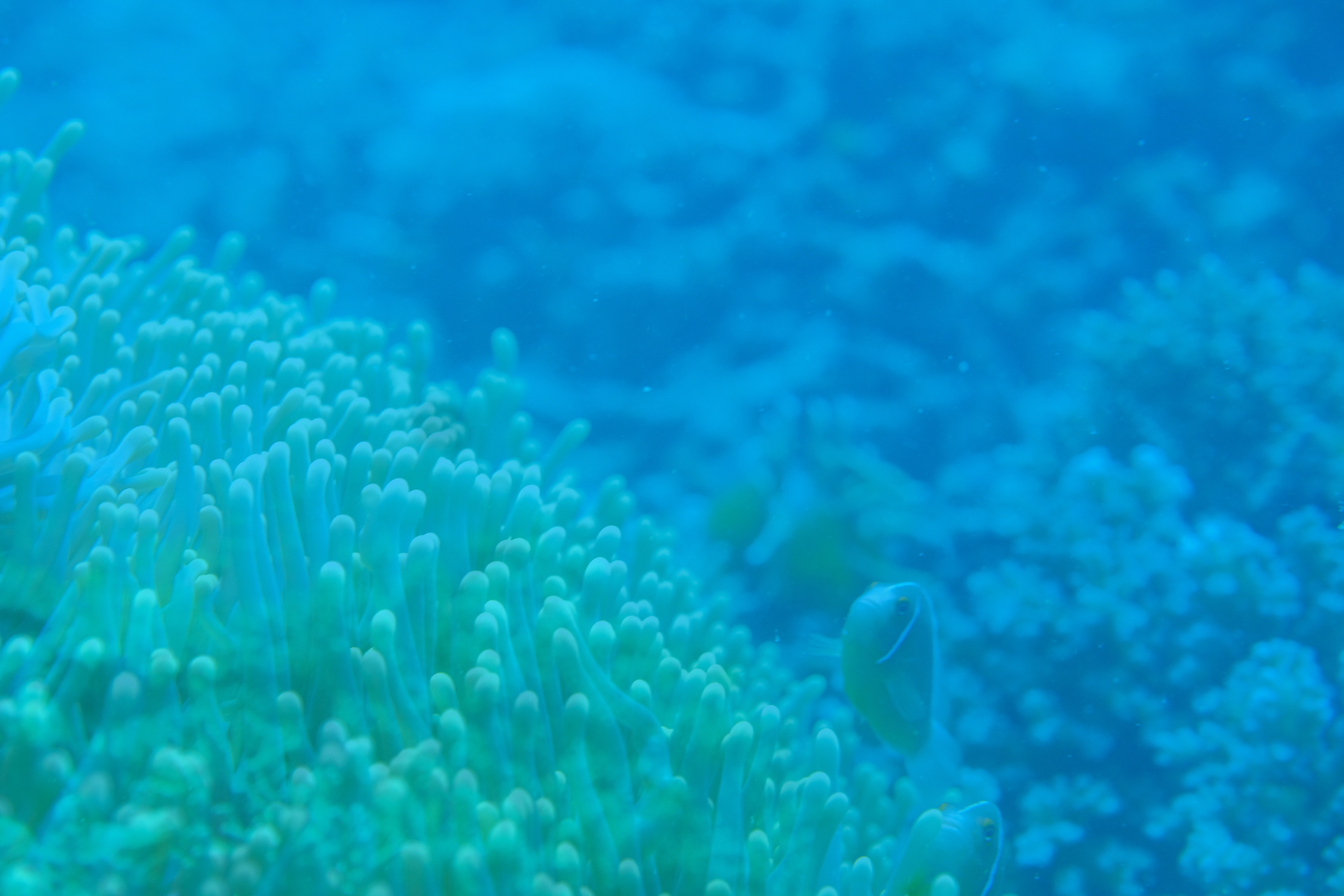 クマノミやサメに会えました😊。昨日の海よりも綺麗な場所でした。エルニーニョ現象や環境破壊の影響でサンゴは死んできてしまい、サンゴの色も年々褪せているようです。我々がテレビや広告で見るような海は、一番綺麗な夏に撮影して、さらに色を加工しているんです😓。