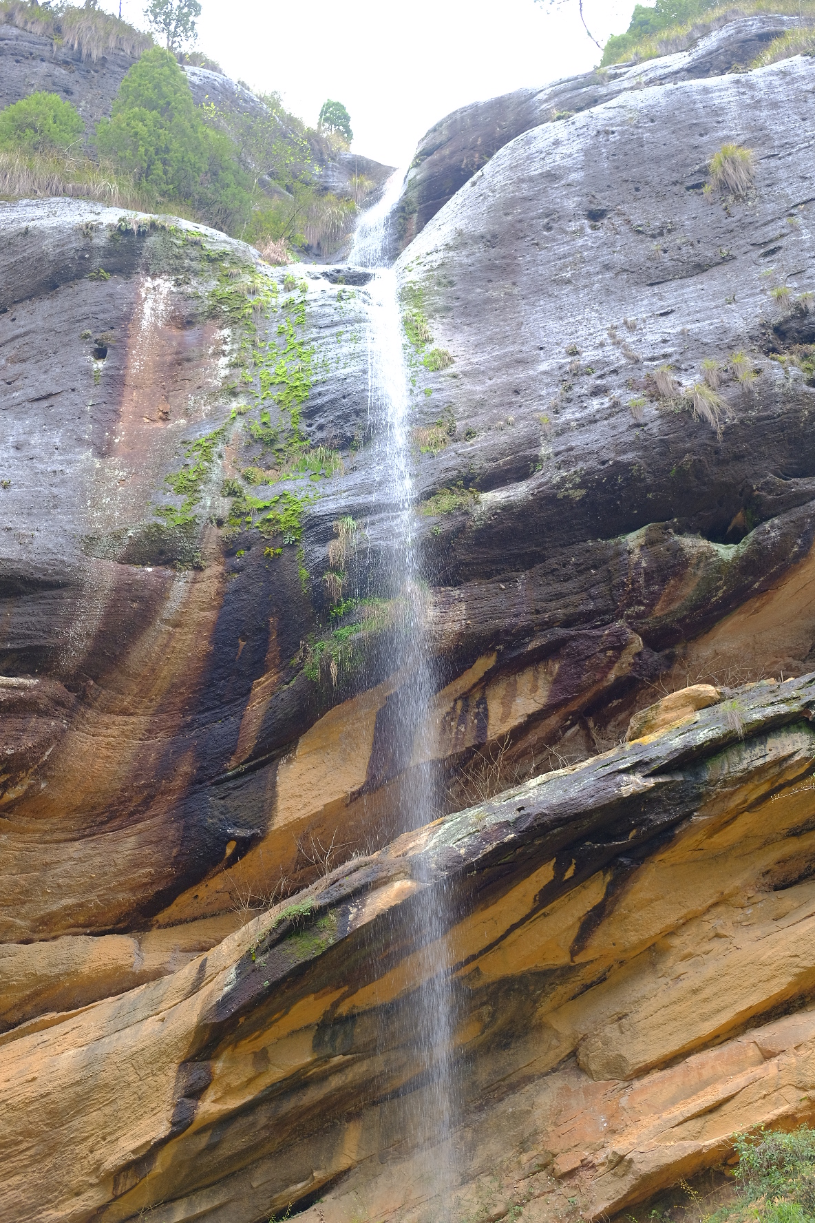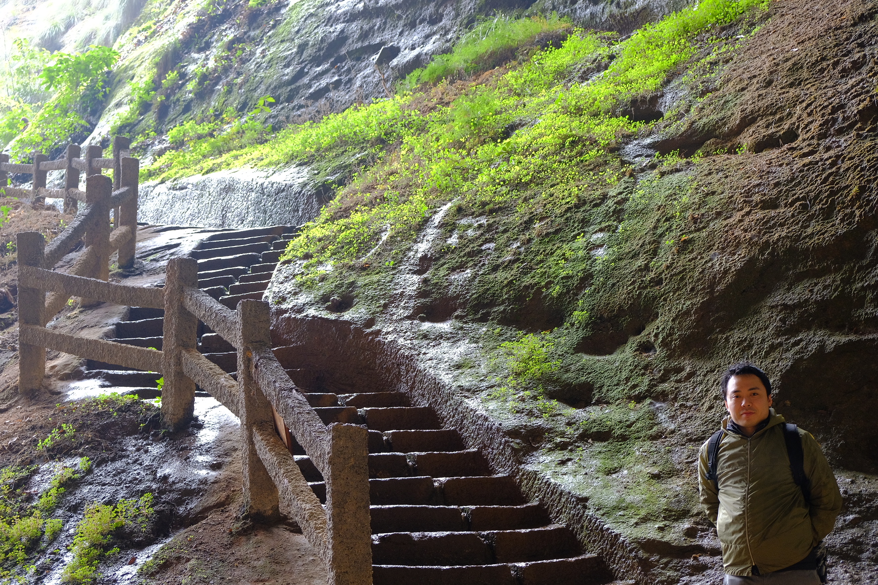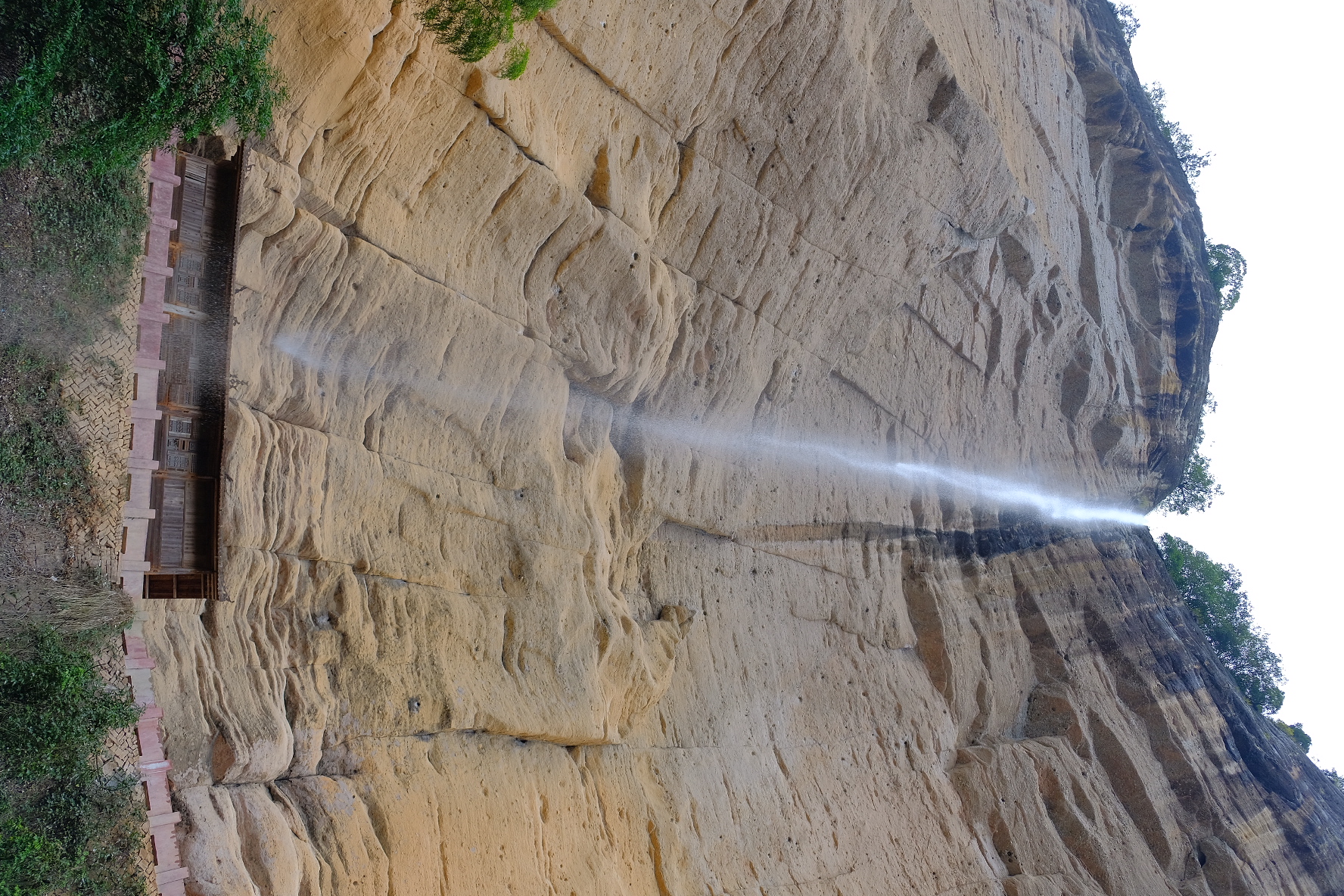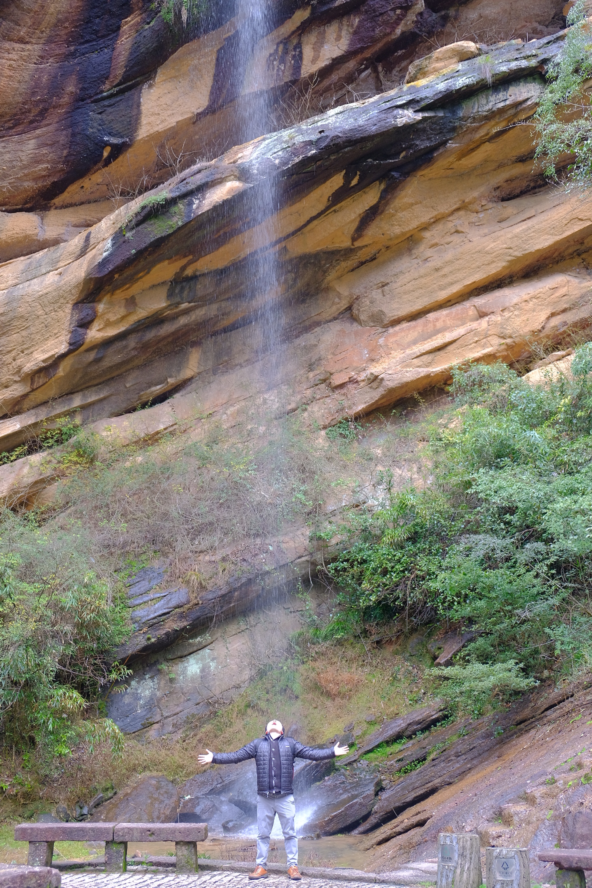 水簾洞景区の水簾洞。大雨の後にならないと滝が見れないですが、昨夜大雨だったので運よく見ることができました😊。偶然でしたが雨降っていいこともあるんですね。空を見上げる高さです。