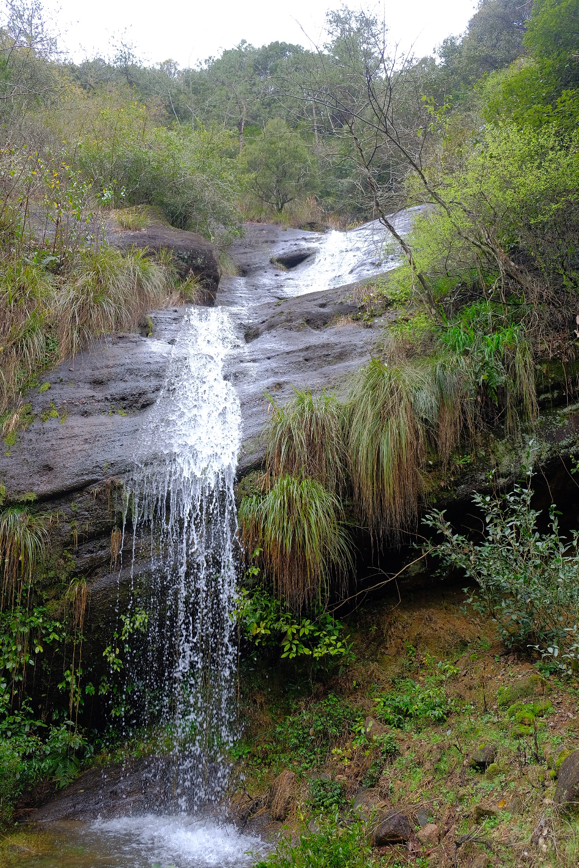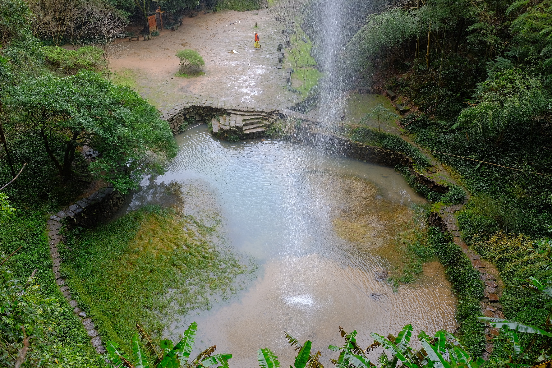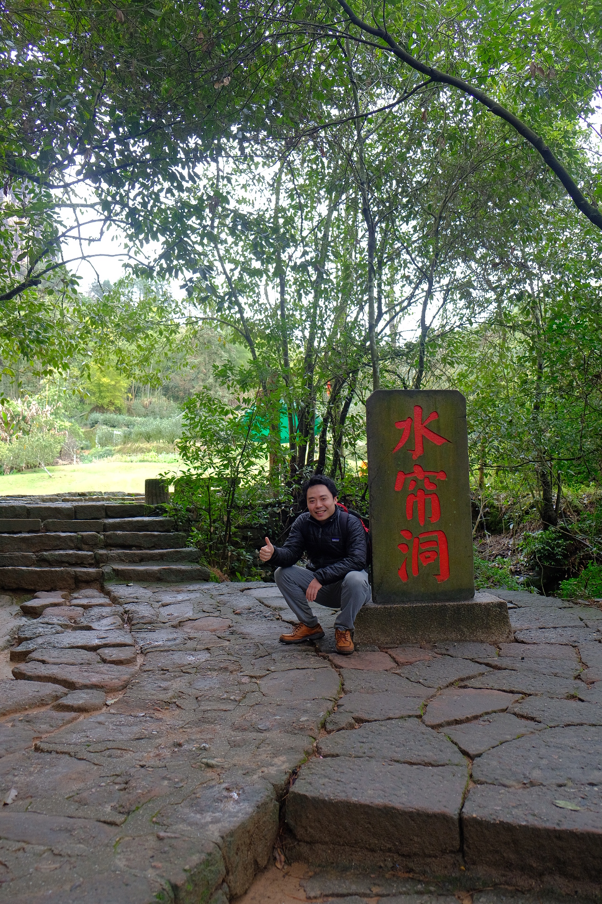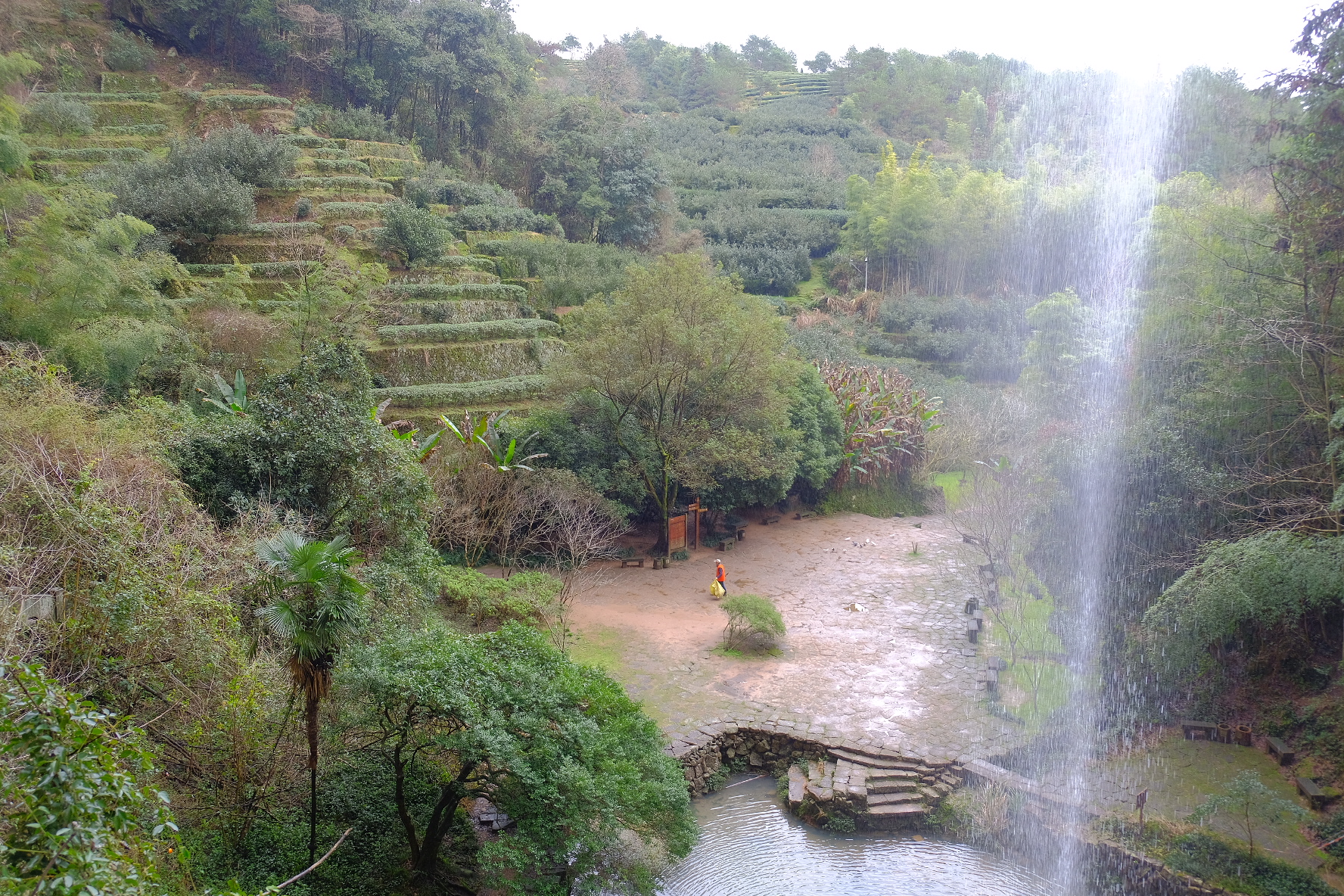 水簾洞景区の水簾洞。大雨の後にならないと滝が見れないですが、昨夜大雨だったので運よく見ることができました😊。偶然でしたが雨降っていいこともあるんですね。空を見上げる高さです。