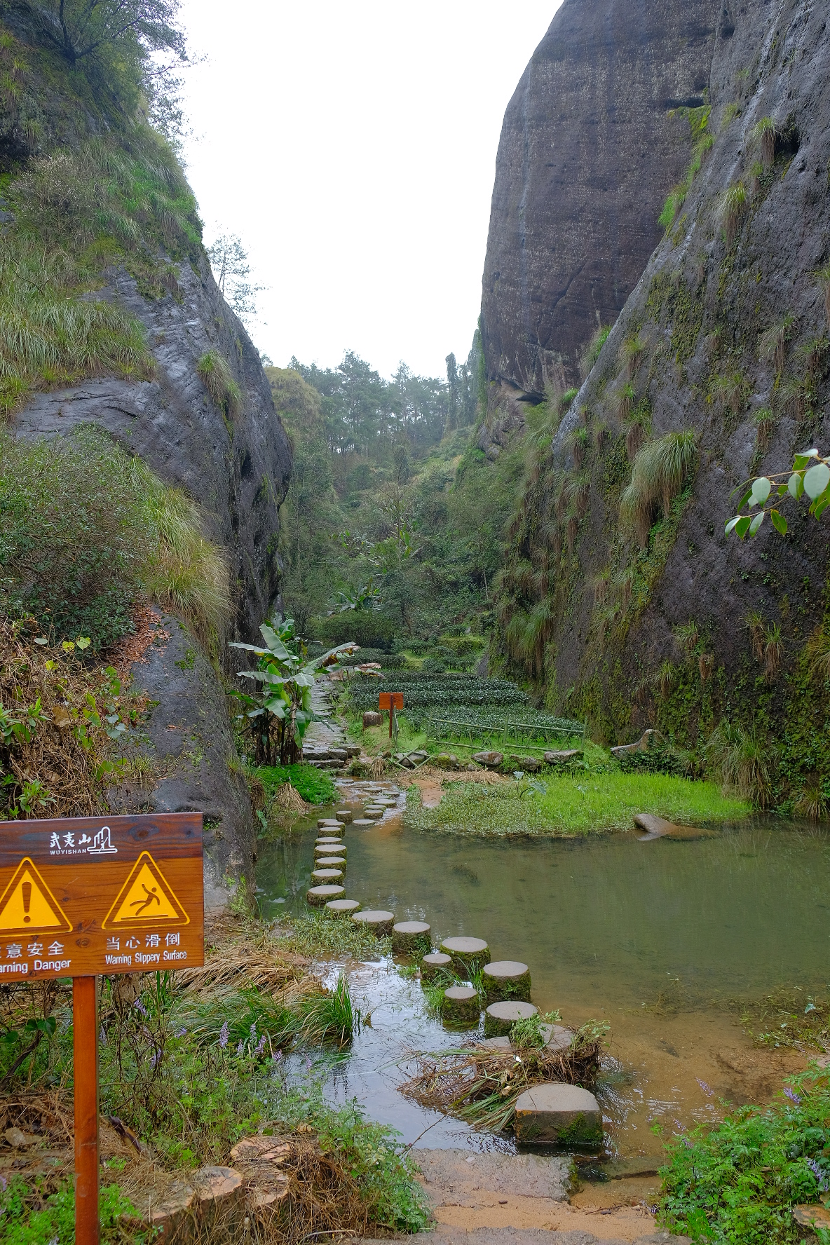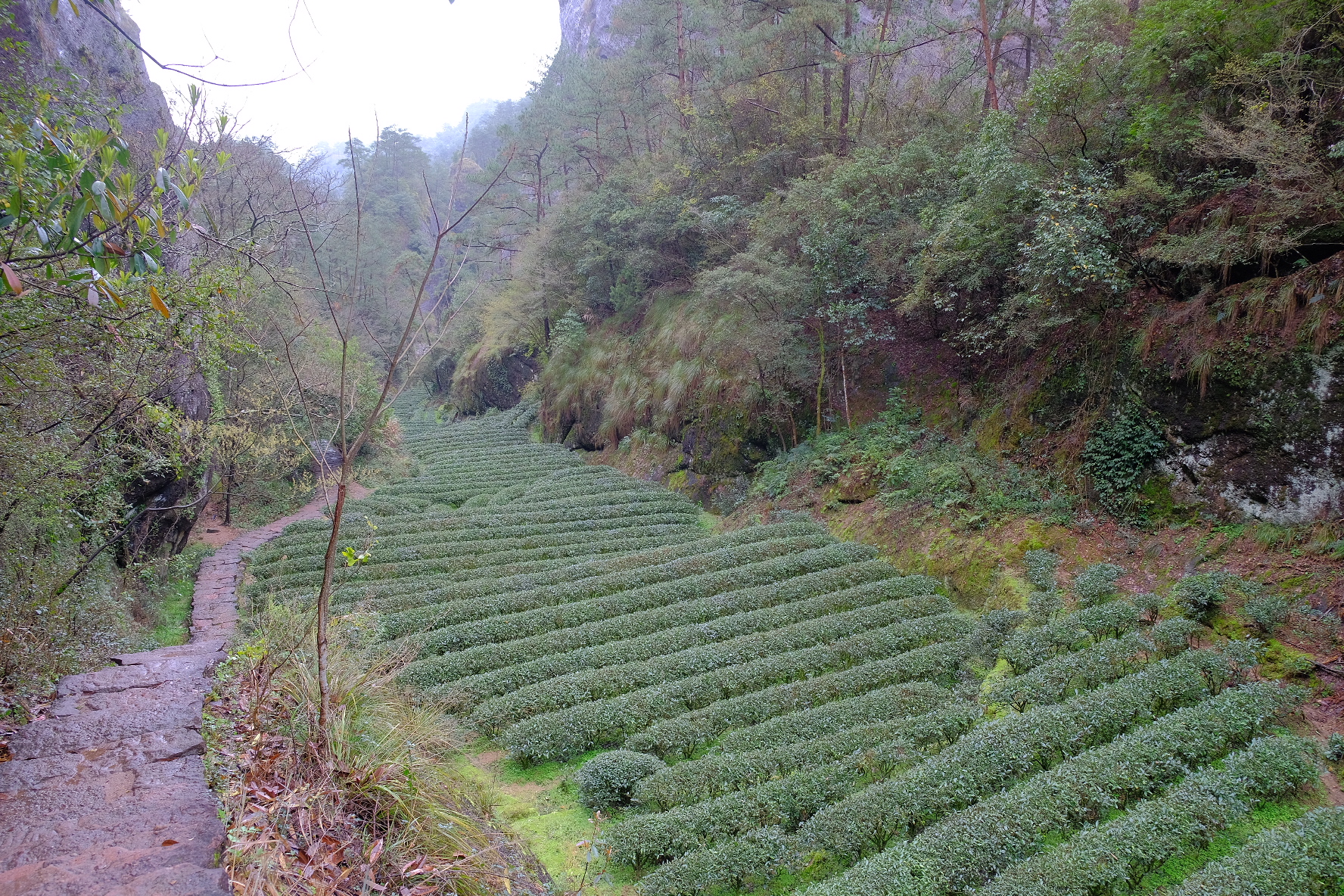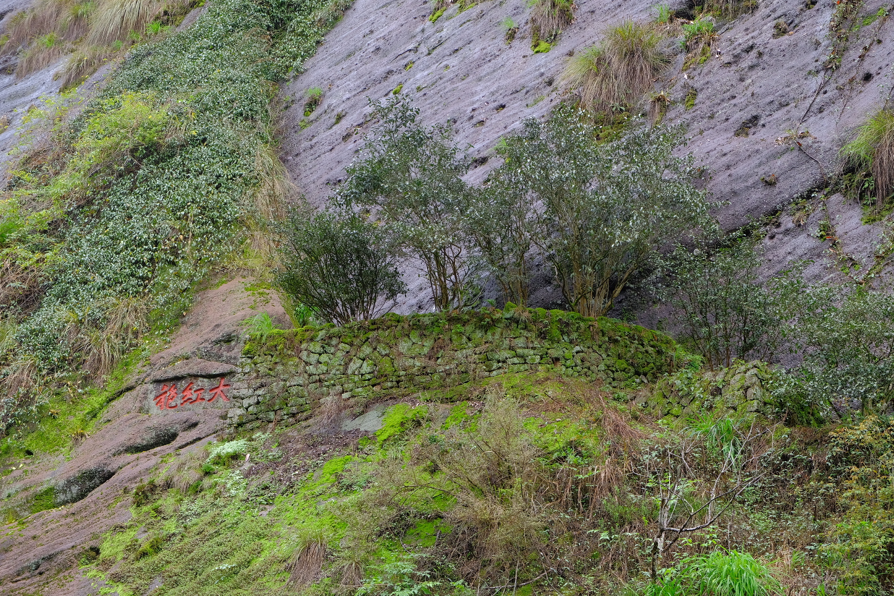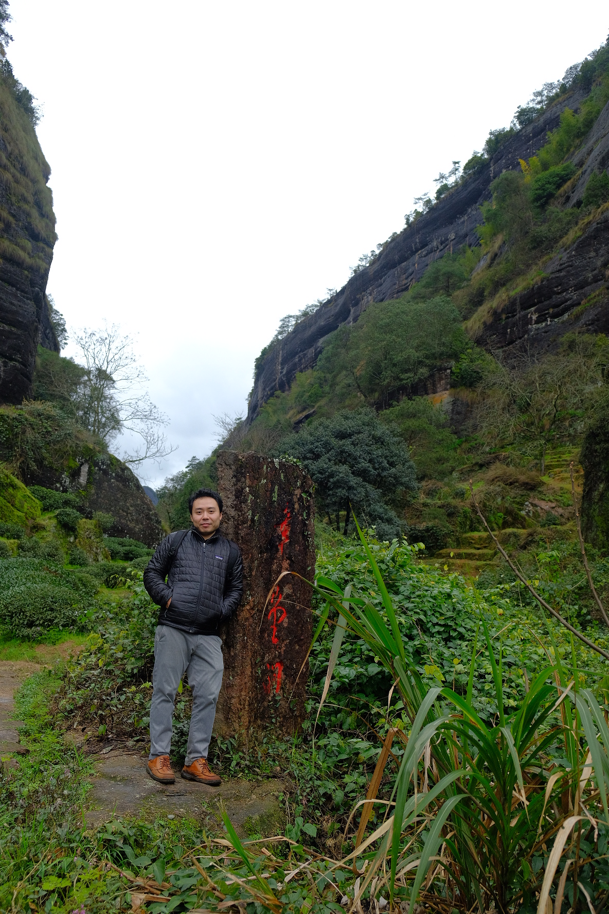 大紅袍景区。武夷山の茶の中でも特にこの岩場で栽培されたものは最高級品です。一般には出回ることがなく、中国政府が管理しています。20gで250万円すると言われています😳。