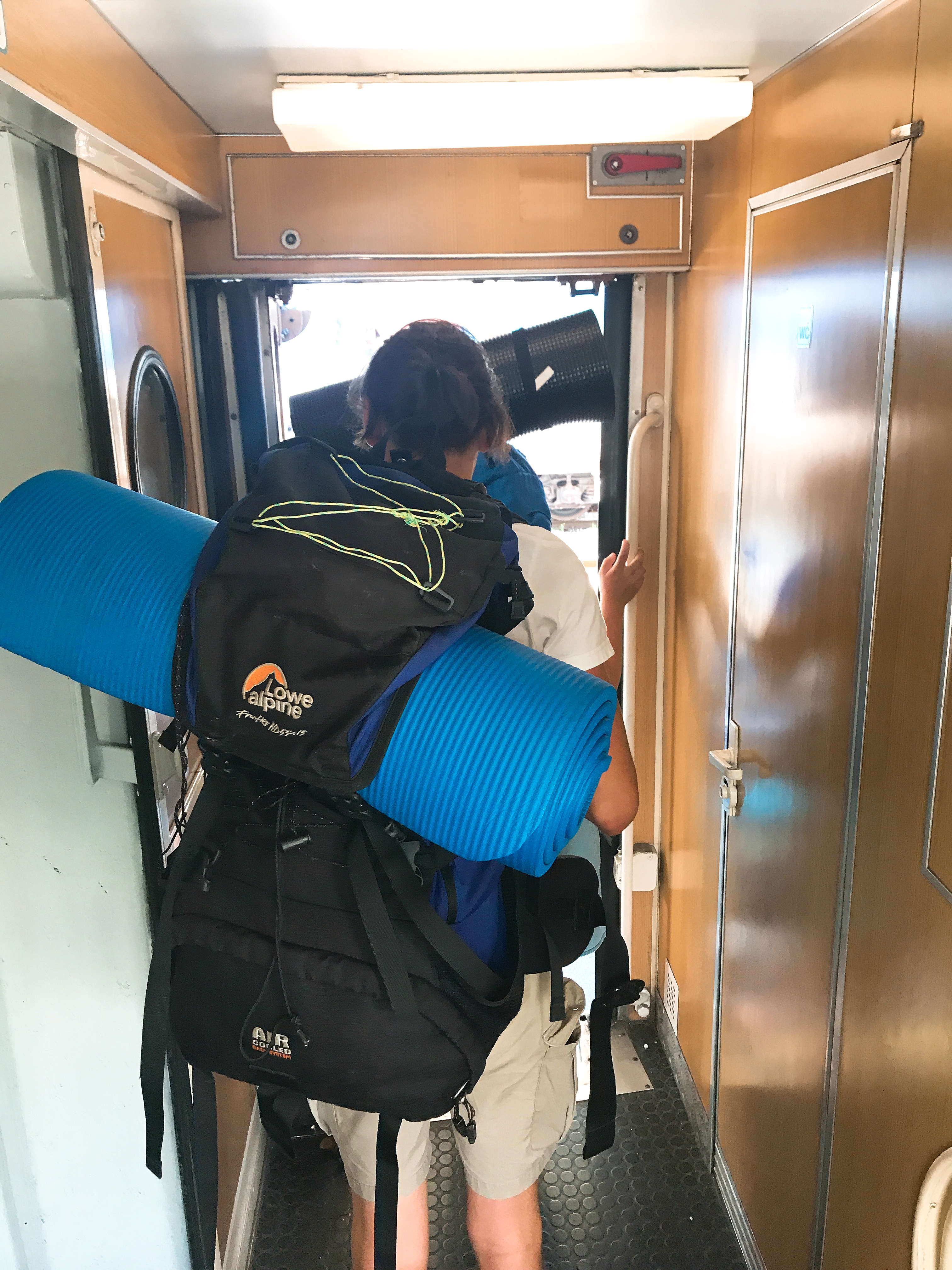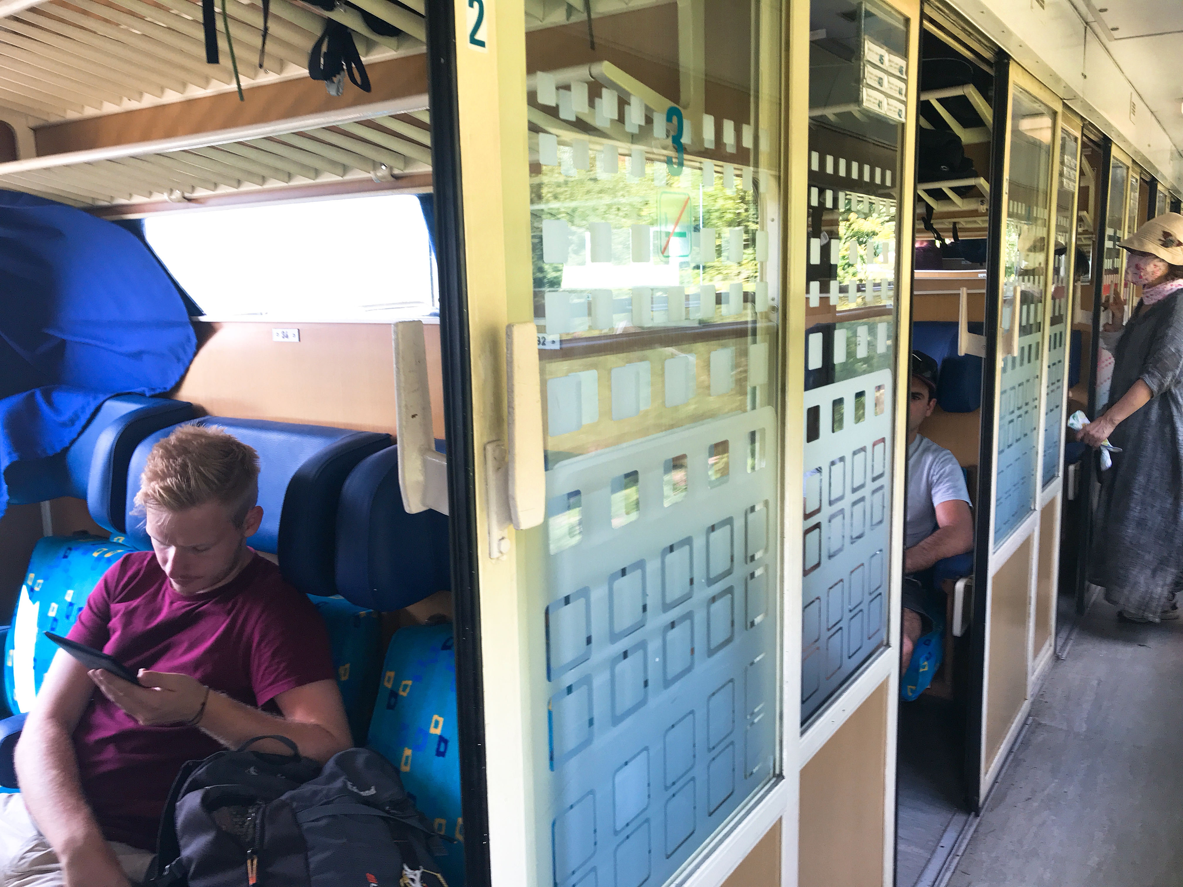 座る席がなく、立ったまま移動します。2等席は空調がないため、もの凄い暑くて地獄でした😭。トイレは手を洗う水が流れず、この写真の見た目以上に環境は悪かったです。