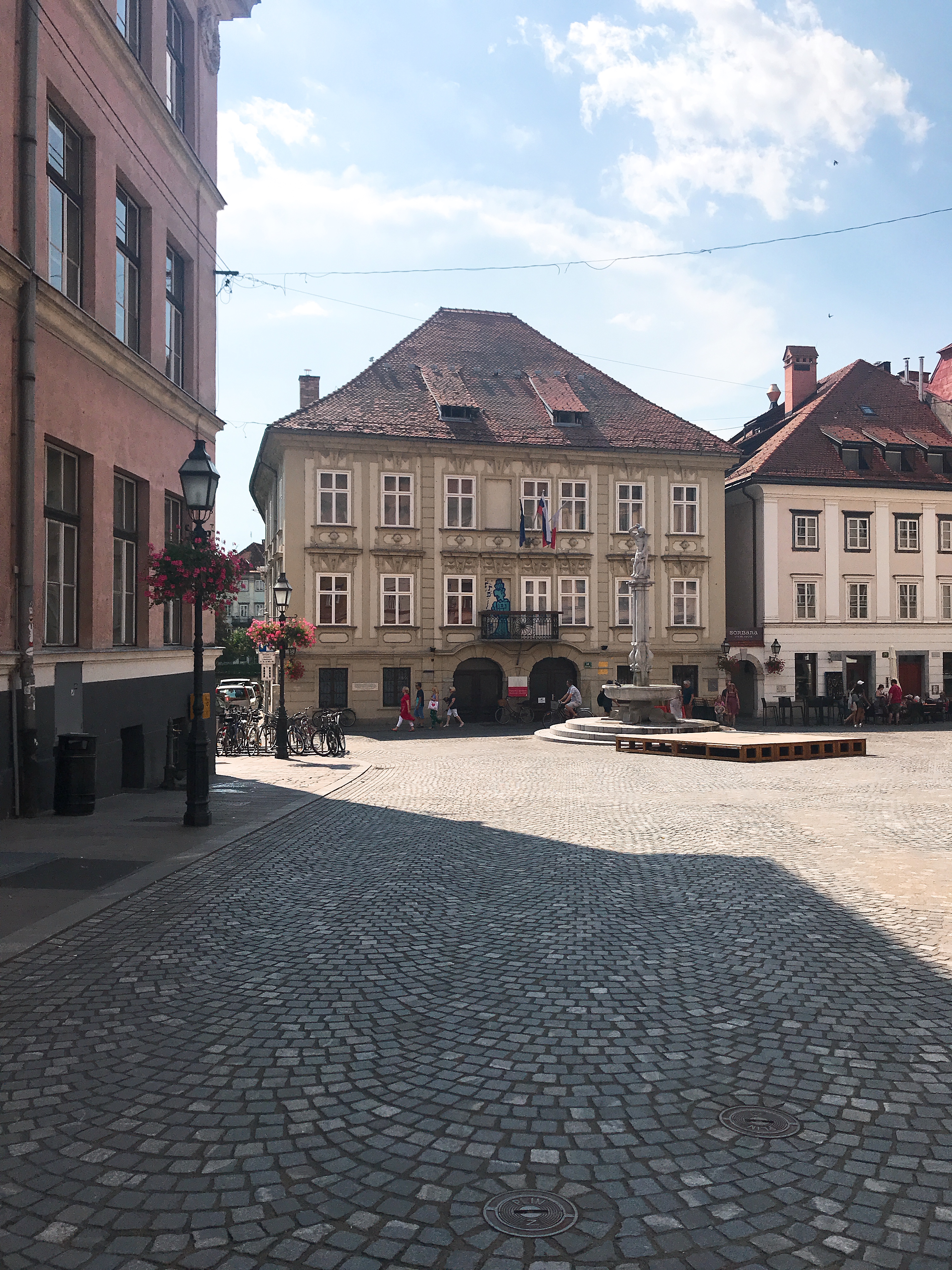 街中散策。スロベニアは日本の四国と同じ大きさです。首都リュブリャナは静かでいい感じです。都会と言えるほど栄えているわけではないですが、緑もあり川もあり住むのにちょうどいいくらいのバランスです。